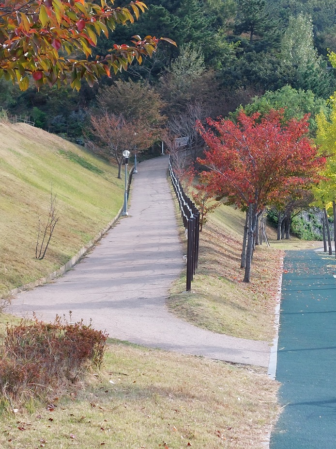이번 코스는 경사로 30도 정도의 가파른 구간입니다. 계단 코스를 통과 후 경사로 약 70 - 80m로 걷기 운동의 최고 난도가 높은 구간입니다. 초기에는 3번 정도 쉬고 갈 정도의 코스였습니다. 지금은 단 번에 올라갈 정도랍니다.