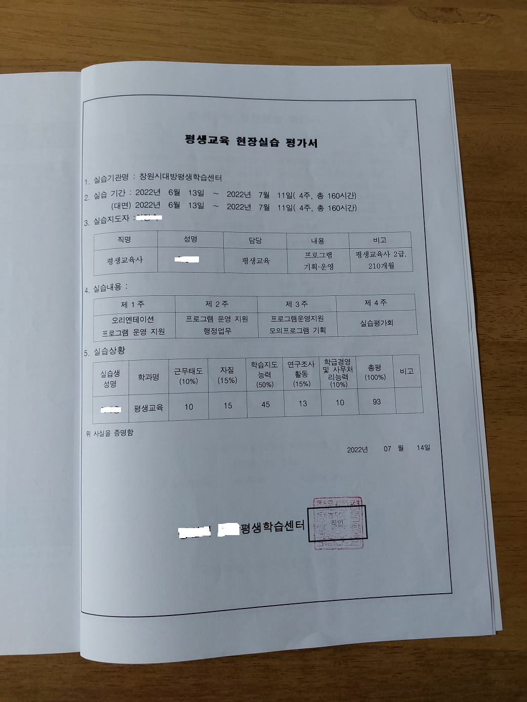 ⑥ 평생교육실습평가서 1부