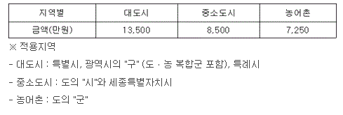 재산가액을 합산한 금액에서 차감하는 기본재산한도액은 지역별로 다음과 같다.