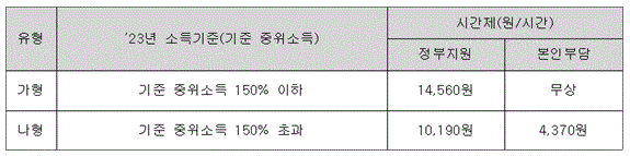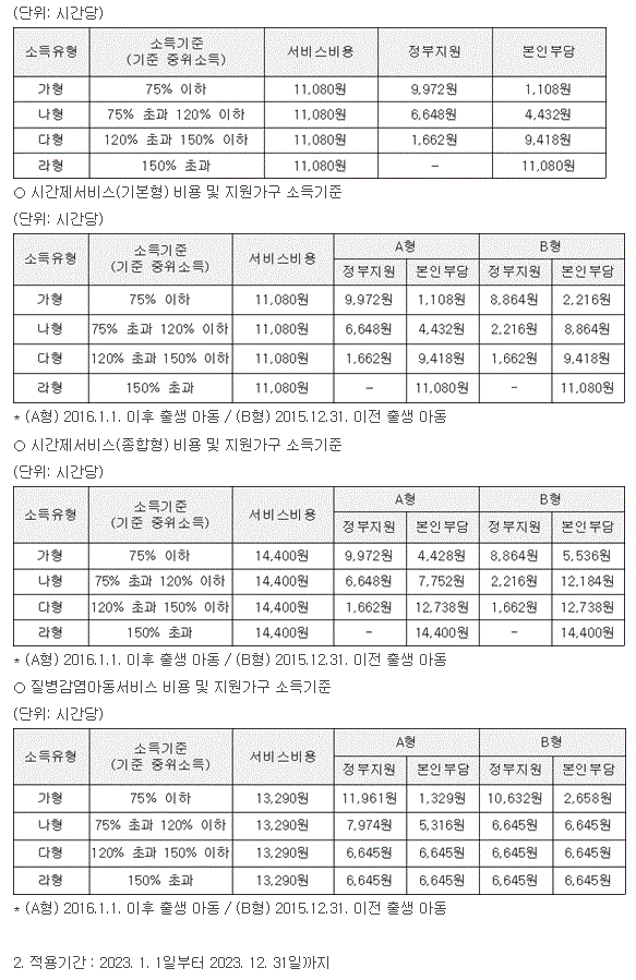 2023년도 아이돌봄서비스 비용 및 지원가구 소득기준