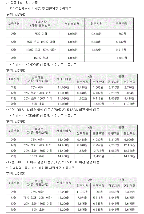 *(A형)2016.1.1 이후 출생아동/(B형)2015.12.31 이전 출생 아동