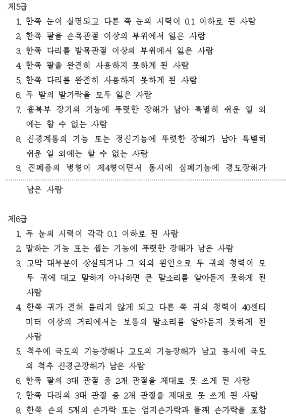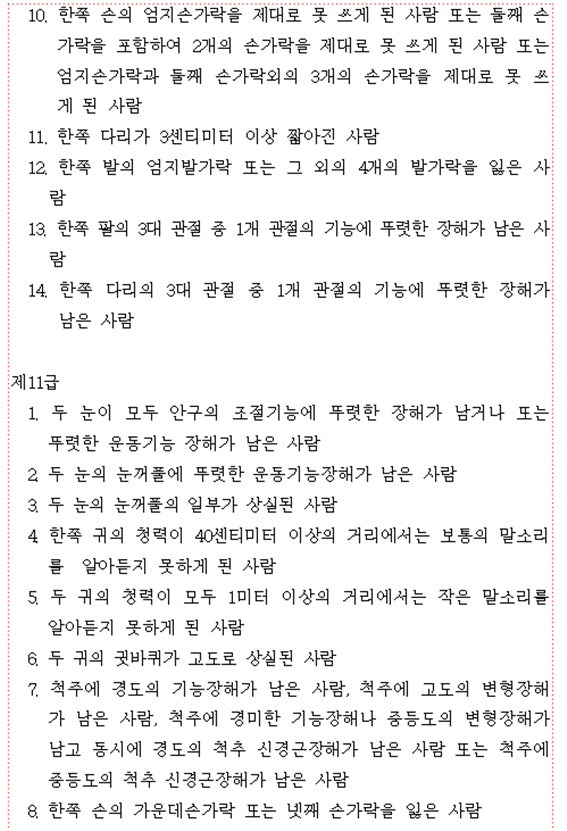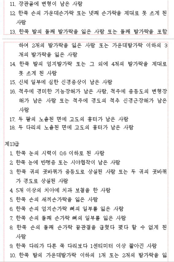 ■ 장해등급기준(1급~14급)