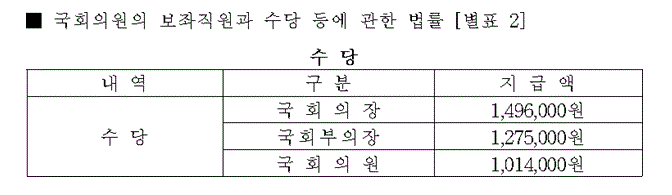 자료출처 : 국회법, 특정금융정보법, 국회의원의 보좌직원과 수당 등에 관한 법률