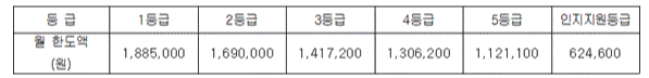 ※ 재가급여(복지용구 제외) 등급별 월 한도액