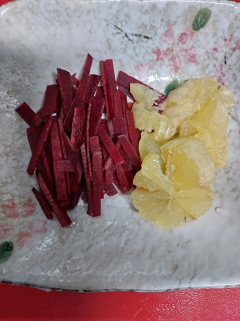 ① 비트는 세척 후 껍질을 제거한 후 채썰기 한다.
