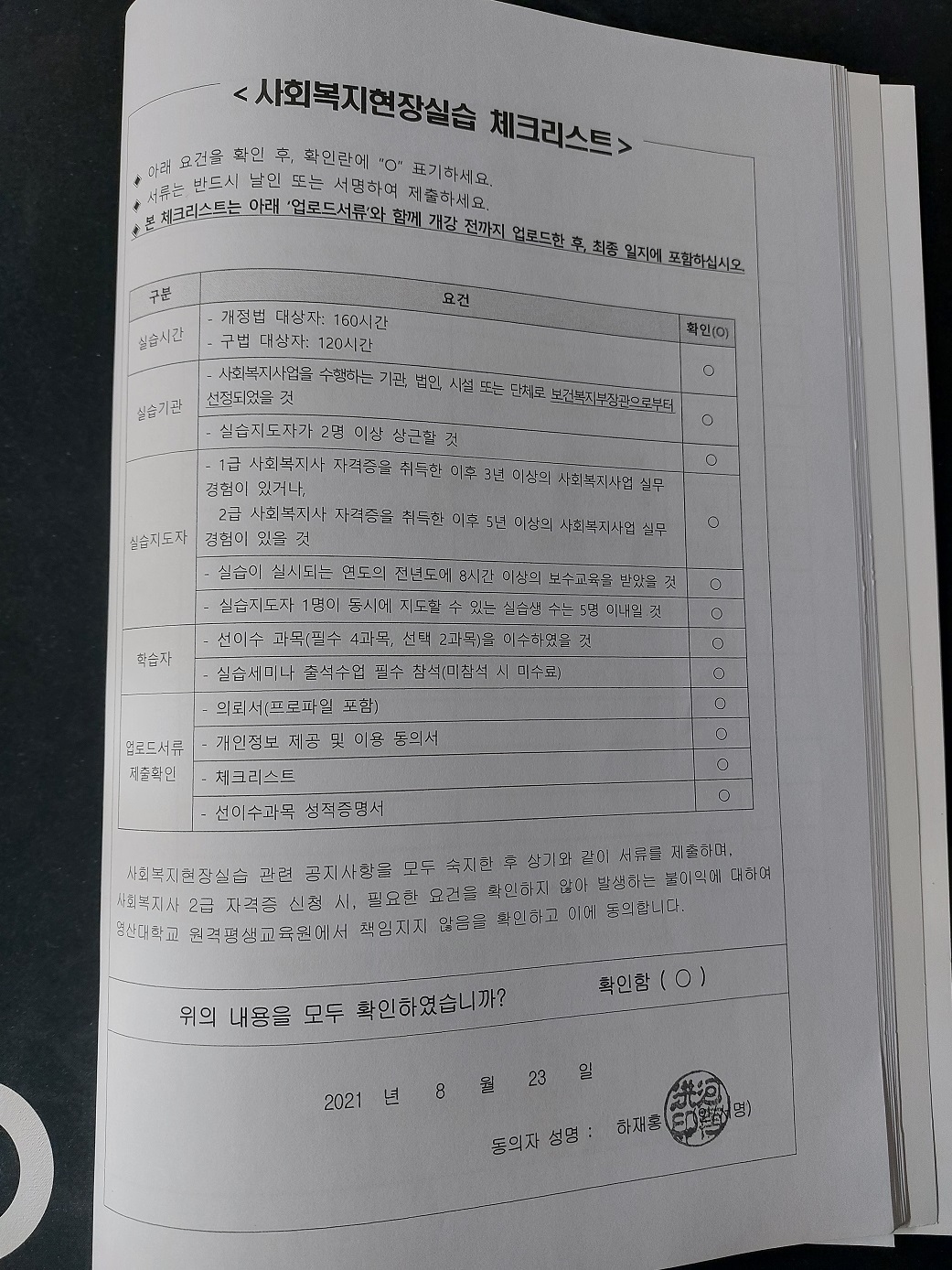 사회복지사 시험 후 현장실습 핵심 서류