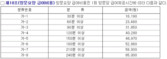방문간호 급여비용은 1회 방문당 급여제공시간에 따라 다음과 같다.