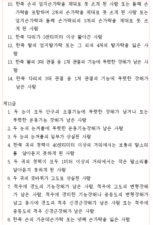 *장해등급의 기준