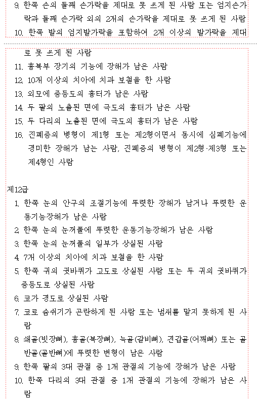 장해등급 기준