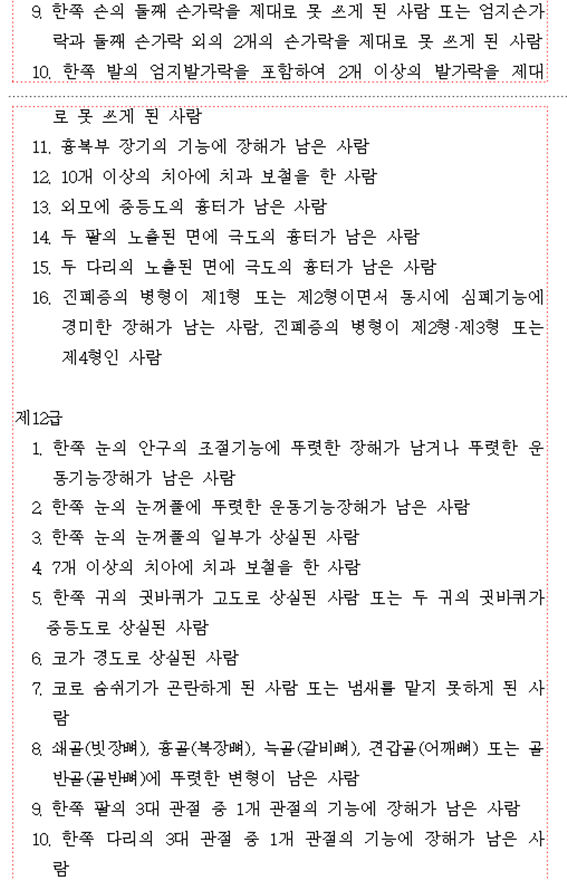 ■ 장해등급기준(1급~14급)
