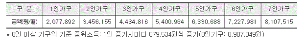국민기초생활보장법 제2조 11호에 따라 급여의 기준 등에 활용하는 '기준중위소득'