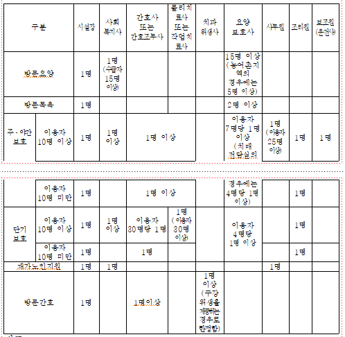 - 방문요양, 주 · 야간보호, 단기보호 및 방문 목욕서비스
