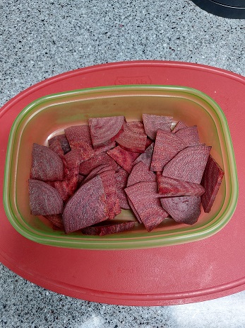 ① 비트는 세척 후 껍질을 제거한 후 채썰기 한다.