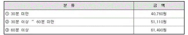 1) 급여제공 시간이 30분으로 적용하는 경우 시간당 금액의 50%를 산정한다.